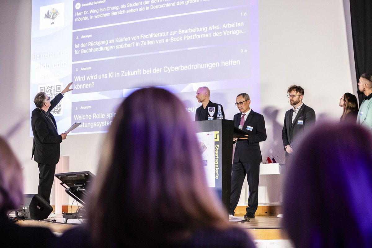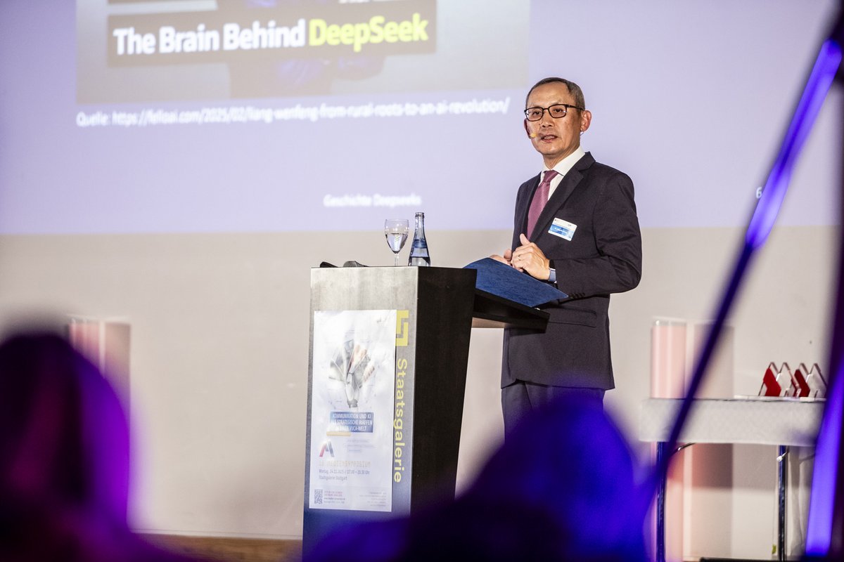 Raphael Leibl, Head of Innovation and Technology der RENK Group, gab Einblicke in die Kommunikation eines Rüstungsunternehmens im Spannungsfeld unterschiedlicher Anspruchsgruppen. Dr. Wing Hin Chung, China- und Finanzexperte, analysierte den sogenannten „Deep-Seek-Moment“ und verdeutlichte die Rolle von Kommunikation als strategisches Instrument auf globaler Ebene.